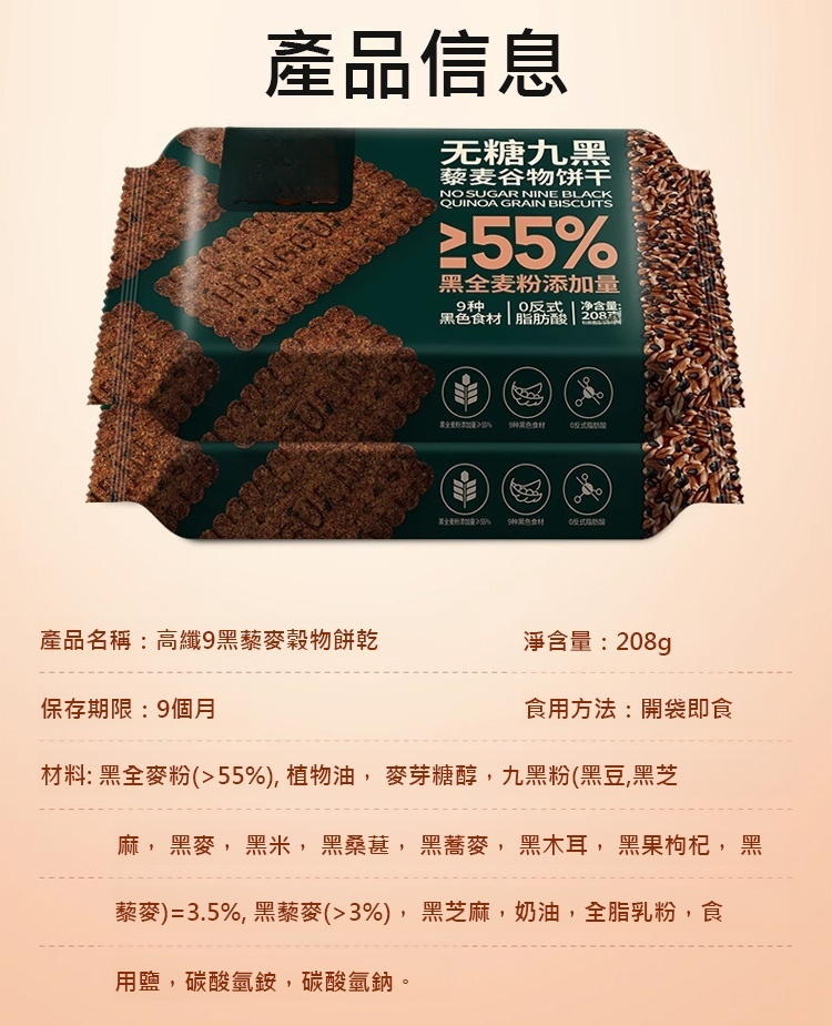 高纖維質9黑藜麥穀物餅乾